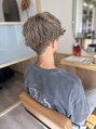 1ブリーチにオリーブベージュでおしゃれなハイトーンカラー癖毛を活かしてムースでパーマ風スタイリング