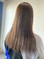 10年以上ぶりの縮毛矯正です!めちゃくちゃくせ毛で髪質はしっかりしてます。オイルカラーで全体染しました。仕上がりはアイロンを使っていません、アウトバスオイルを使用したのみ!キレイにツヤツヤ