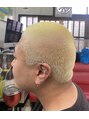 ボウズのレングスで、2回ブリーチからのレッドカラーのスタイル