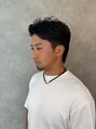 横はツーブロックでナチュラルショートに。刈り込み過ぎないスタイルに仕上げてます。