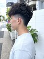 フロントにボリュームがたまるように後頭部はスッキリ、サイドもフェードで刈り上げて前髪はやや長め!パーマは弱めのスパイラルとツイストの組み合わせであえてゴワッとした質感に!