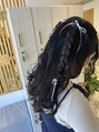 ロングヘアを活かしたハーフツインアレンジ♪全体をボリュームが出すぎないウェーブヘアにすることで毛量があっても重たい印象にはならずツインの部分を三つ編みにすることで甘い印象の中にも少し個性的なスタイルにしました!