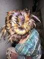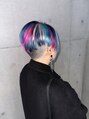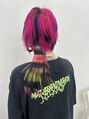 変形デザインのウルフスタイルです!!青とピンクのカラーコントラストが可愛いです。普通のウルフカットに飽きた時にオススメです!!