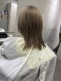 エクステのみのお客様!他店でのカラー後、ハイトーンのエクステを取り付けました!毛先が軽いため、馴染ませカットは不要ですが、表面がかなり短いので本数が必要になります!本数を減らしてしまうと筋っぽさがでるのでエクステ感が出てしまいます!