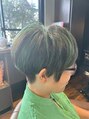 久々の推しカラー、ハイライトよりももっと存在感をだしたブリーチデザイン!どこから見てもグリーンを感じたい要望に応えてました。ヘアスタイルは刈り上げてスッキリと!