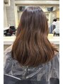 ばっさりカットお任せいただきました!肩につかないボブ+表面にレイヤーを入れて軽くしてあります◎仕上げはストレートアイロンで簡単アレンジ^^カラーは赤みの少ない柔らかなブラウンに!