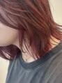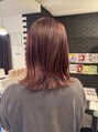 肩下切りっぱなしボブにインナーをブリーチ、ハチ上はライトナーで色を上げたあとにオンカラーはボルドーカラーをのせました。