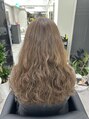 明るめのオリーブベージュ☆中間から毛先のみ癖毛を活かしてスタイリングしました!赤みを抑えて綺麗に色落ちするので次回以降のカラーの幅も広がります◎