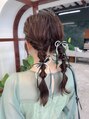 結婚式二次会アレンジ ツインヘア リボンアレンジ 編みおろし