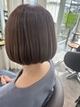 まとまり重視のころんとボブです。襟足はギリギリまで切ってほぼショートスタイル。カラーは少し明るめのモスグレージュブラウン。白髪が少し染まるカラーになってます。