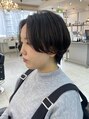 前髪なし、センターパートがカッコいいショートスタイルです。