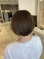 大人可愛い丸いボブシルエットも綺麗に見えるようにバランスを見ながらカットしたのと、表面の毛束が動き出るように軽くし重たく見えすぎないように仕上げました。カラーは赤みを消したアッシュベージュで明るく透明感のある色味に仕上げました。