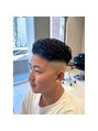 ウエイト高めのスキンフェードにツイストパーマを合わせた男らしいスタイル。ウェット系スタイリング剤でツヤを出せば、シャープさと無造作感を兼ね備えた仕上がりに。