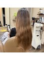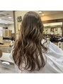 ブリーチなしでのブラウンベージュカラーです。レイヤーが沢山はいってるので、巻くと動きが凄いでます。3枚目の写真はBEFORE(染める前のベースが結構明るくないと難しいです)