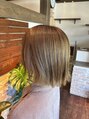 サイドはアゴ下のショートボブスタイルです。肩下からバッサリと切らせて頂きました。ストレートアイロンで毛先を軽く巻いてます。