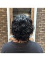 ミディアムレングスのサーフカール風スパイラル。大きめのロッドでランダムな動きが出るように。スタイリングはムースやグリースで簡単に揉み込むだけ!