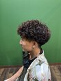 サイドとバックをスッキリ刈り上げてしっかとパーマを掛けたスタイル。プードルパーマはスタイリングに時間がかかりません。濡らしてムースをつけるだけ!!