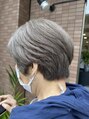 グレーとベージュを混ぜて柔らかいカラーにしました。白髪を活かして染めてます。ブリーチはなしです。