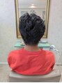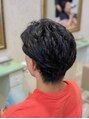 ツーブロックでサイドを刈り上げつつ、全体の長さを残して自然な毛流れを作るニュアンスパーマをかけています。お手入れの簡単なスタイルになります