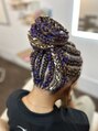 コーンロウ、毛先ブレイズエクステ編み込み(ロング料金有)
