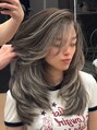 バレイヤージュ(グラデーションカラー)とハイライト(筋感)のちょうど間のニュアンスデザインカラー。バレイヤージュ状にハイライトを施して立体感も明暗差もどちらもプラスに!レイヤーカットとの相性も良いので組み合わせて躍動感のあるヘアに提案。