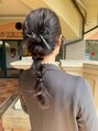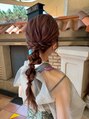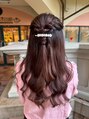 編み込みとハーフアップで上品にまとめ、毛先はゆるやかなカールで華やかさをプラス。パールのアクセサリーが映えるので、結婚式やパーティーシーンにもおすすめです。ダウンスタイルでも可愛く、特別な日を華やかに彩ります。