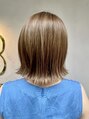 切りっぱなしボブは外ハネスタイリングでカジュアルに!ハイトーンベージュ系カラーでより軽さを出して◎