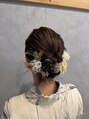肩上の長さのお客様。完全お任せでアレンジをさせていただきました。髪が短いとアレンジの幅が少ないと諦めてしまう方も多いですが、飾りやおくれ毛でかわいくアップ出来ます!