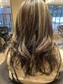 ハイライトを動きが出るように細めにとって細かく入れました。ベースは赤みを消す為にオリーブベージュの色で13レベルでオンカラーしました。褪色するとさらにハイライトの部分がいい感じに表現してくれます。仕上げはカールアイロンで巻きました。