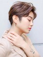 マロンベージュショート前髪レイヤー髪質改善縮毛矯正原宿表参道