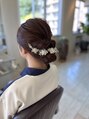 ヘアセット。襟元が綺麗に見えるシニヨンスタイルです。
