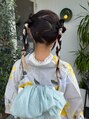 ハーフツインのスタイルに髪で作ったリボンが見えるかわいいスタイル!とにかくかわいいをメインとしたスタイルにアレンジ!リボンと巻きつけたリボンで合わせました!
