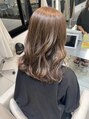 透明感のあるミルクティーカラーに、ゆるやかなウェーブを合わせた大人可愛いスタイル。ツヤ感と軽やかさで女性らしさを引き立てます。