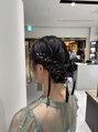 肩に当たるくらいの長さのお客さま。ふわっとなりやすいよう、サイドからもツイストを入れております。お持ちいただいたパールのアクセとリボンがぴったりでした!