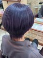 ラウンドマッシュ/パープルネイビー/Wカラー/襟足ウルフ/ボブ/ホットペッパービューティー