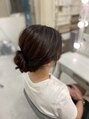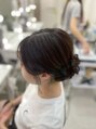 重たく見えがちな黒髪を、表面に動きを付けるとこで軽く魅せた下目アップヘア。