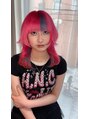 ブリーチ2回以上からつくる超個性派デザインカラー!全体ネオンピンクに前髪とうしろにいれたデザインカラーはウルフカットとの相性もよく唯一無二のスタイルになります!