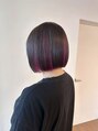 ブラックとビビットピンクパープルのコントラストのきいた幅広インナーカラー!!パツッと切りっぱなしボブにも似合うデザインカラーです!