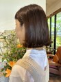 白髪がありながらも、白髪染めをしてしまうと、伸びてきた時に返って白髪が目立ってしまう、、、そんなもどかしさを感じなくてもいいカラー。カラーの後はもちろんダメージ対策のヘアパックをしっかりと。カットはナチュラル&キュートな外ハネボブ