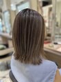 白髪を隠すのではなく、活かして馴染ませるデザイン。細めのハイライトで透明感と動きをプラスし、伸びても自然に見える仕上がりに。大人女性におすすめの白髪ぼかしです