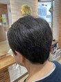 カット&プレミアムカラーです。髪に優しいヘアカラーなのでキシミも少ないのでお手入れも楽みたいです。夏仕様にベリーショートにカットしています。