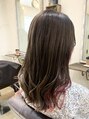 インナーのみ1ブリーチしてます。インナーはピンク、表面の全体はアッシュグレージュにしました。 普段は、チラッと見えるくらいの範囲内で結んでも可愛いです。インナーの入れたい位置や範囲もカウンセリング時にご相談できます(^^)