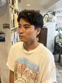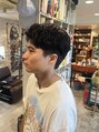 メンズのショートパーマです。サイドと後ろは刈り上げて長い部分は緩めにパーマをしています。元々直毛なので柔らかさが出てスタイリングしやすいです。