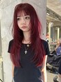 2025年のトレンドの少しシャギーな質感のレイヤーカットとブリーチ無しで出来るだけ発色の良いレッドカラー今の髪色が暗い方はダブルカラーがオススメです!
