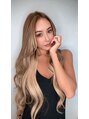 ベージュ系のカラーに、スーパーロングシールエクステ(60センチ)で作り上げる外国人風ロングスタイル