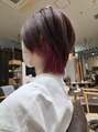 インナーカラーはレッド、表面は柔らかいピンク系ベースはブリーチしています。