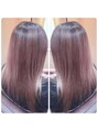 ブリーチ履歴のあるお客様で、くすんだ柔らかいピンクにしました。ブリーチしていない所は明るくなりすぎないようにする事で、グラデーションに♪