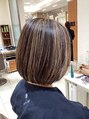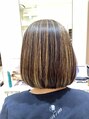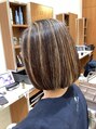 肩上のワンレングススタイルです。顔をどの角度に傾けても綺麗なラインが保てます。カラーは白髪染めとハイライトをする事で明るく綺麗に染まりワンメイクで出来るので時間の短縮と料金もリーゾナブルになりお勧めです!ナチュラルドライでOKです。
