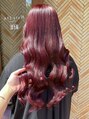 チェリーレッド暖色系カラー艶髪ゆるふわウェーブロングヘア/ホットペッパービューティー