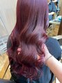 - チェリーレッド暖色系カラー艶髪ゆるふわウェーブロングヘア